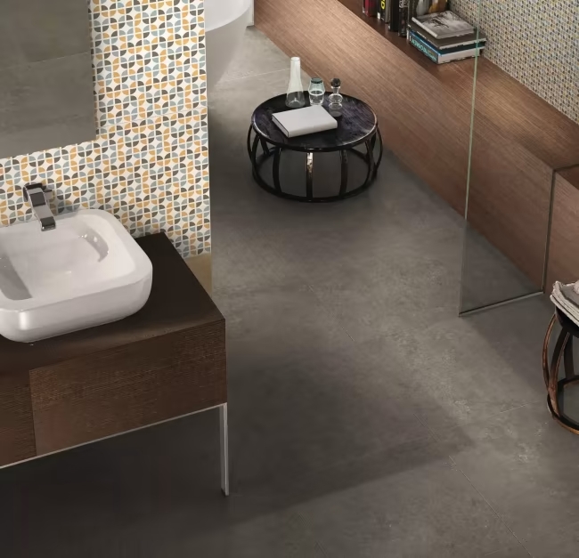 60×60 fliser har blitt den nye standarden i flisbransjen. Fordelen er færre fuger og et mer delikat og elegant inntrykk. Dessuten blir flatene enklere å holde rene siden rektifiserte fliser vil kunne brukes med fugebredder helt ned til 2mm. I samme serien har vi fliser i mindre format, som mosaikk, som gjør det lett å lage fall mot sluk, og å bygge buede former.