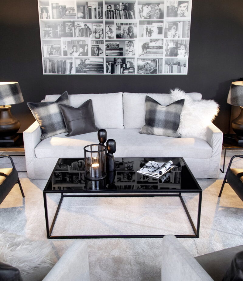 Røykgrått glass. Black Metal Frame.
